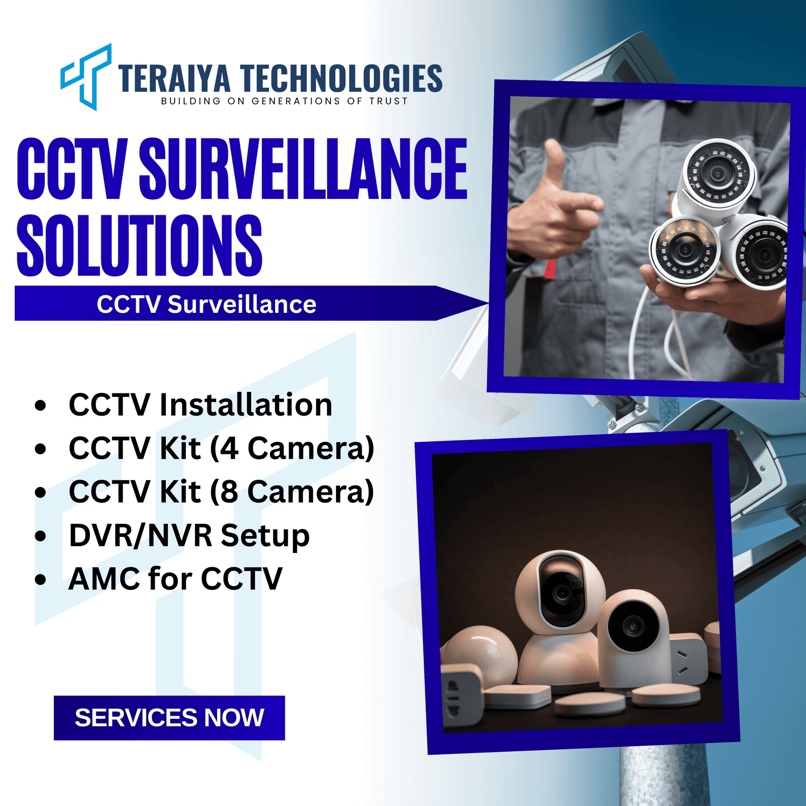 Teraiya Technology is a trusted IT service provider in Surat, Gujarat. We specialize in CCTV installation, networking solutions, computer AMC services, printer repair, server installation, and secure data backup solutions. Our goal is to provide reliable and affordable IT support for homes, offices, and businesses.
